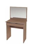 Лаконичный образ стола подчеркивается зеркалом с просто раме. Прочная широкая столешница с выдвижным ящиком позволяет удобно разместить косметику и аксессуары.